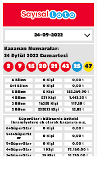 Fitur utama dari aplikasi ini mencakup kemampuan untuk memeriksa hasil undian dari berbagai jenis permainan, termasuk Milli Piyango, yang dapat diakses setiap hari. Hasil Sayısal Loto diumumkan setiap Rabu dan Sabtu, sementara hasil untuk permainan lainnya juga memiliki jadwal tertentu. Meskipun aplikasi ini tidak memiliki hubungan resmi dengan